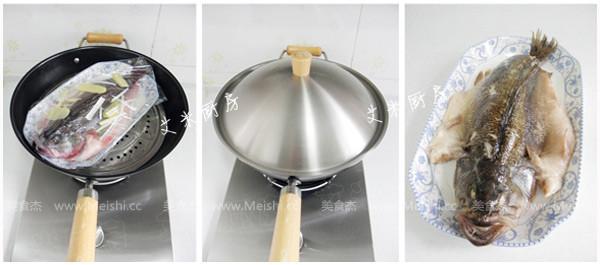 3.鍋里加水燒開后,將魚盤放入,蓋嚴鍋蓋,隔水旺火蒸制8分鐘左右,熄火后不掀鍋蓋虛蒸1-2分鐘