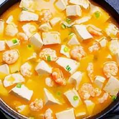 放入豆腐煮幾秒鐘,放入蝦仁煮開