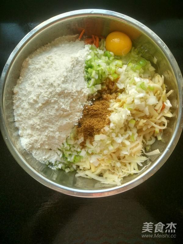 胡蘿卜,土豆,去皮洗凈擦細絲狀。