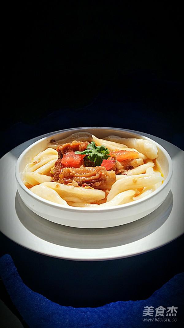 16.羊排和剪刀面混合入碗拌勻即可食用。