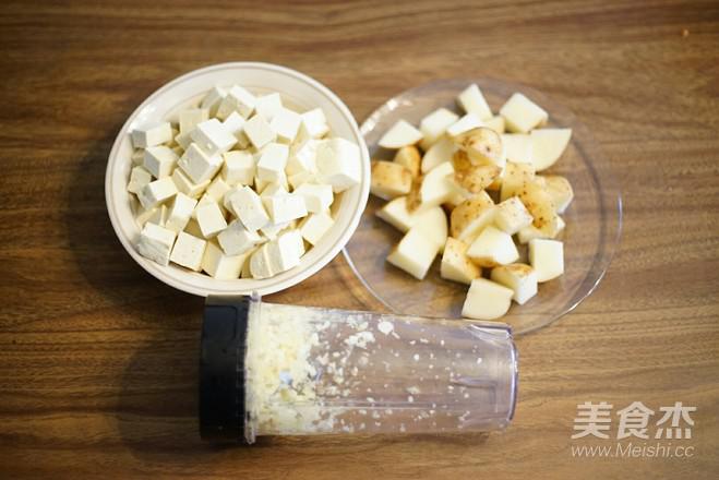 3.豆腐,土豆,西紅柿切1.5厘米方塊,洋蔥切小塊,姜大蒜切碎,菠菜切成5厘米長(zhǎng)段