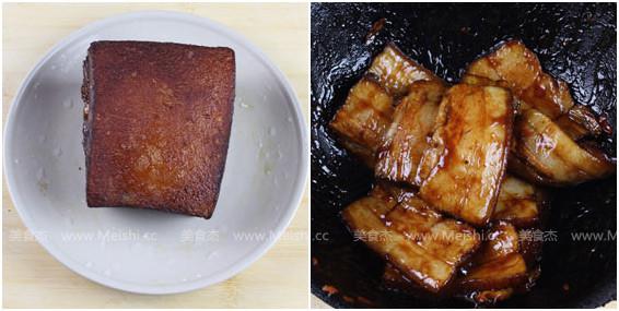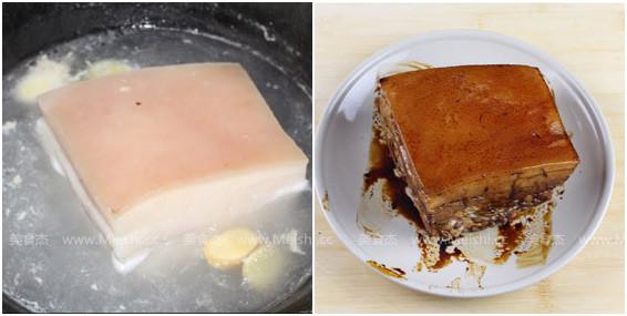 4.肉煮好后撈出來趁熱表面抹上老抽