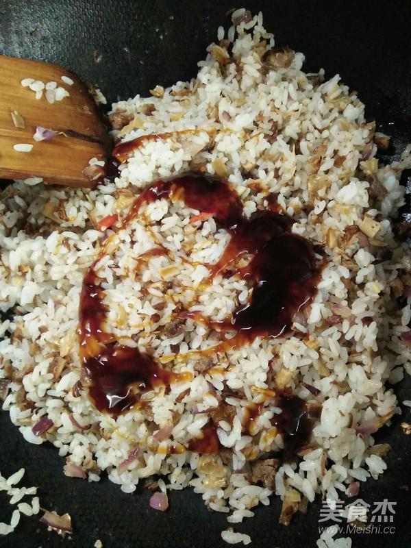 加入米飯炒散。