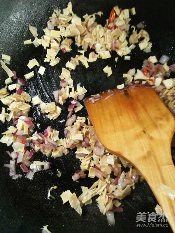倒入筍干煸炒。