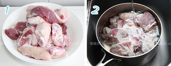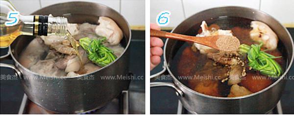 2.將焯過水的豬蹄重新放入鍋中,加入兩倍的清水,放入蔥、姜