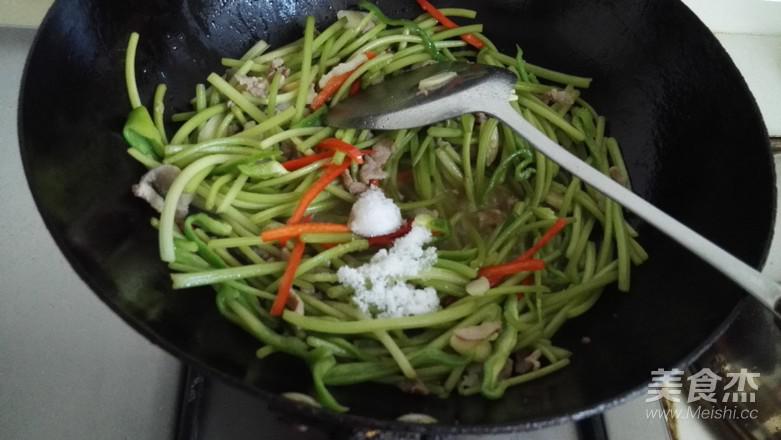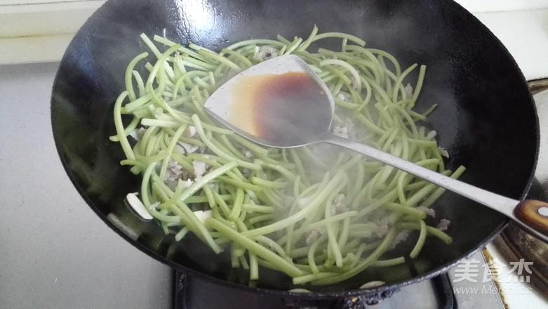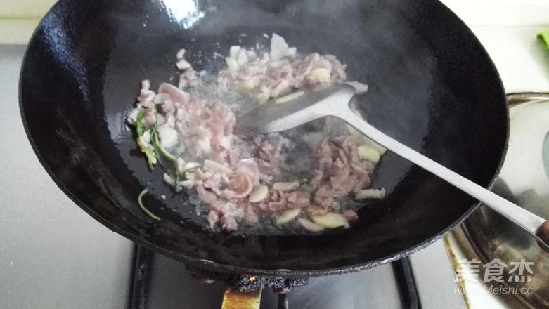 倒入腌制好的肉絲翻炒,翻炒至變色