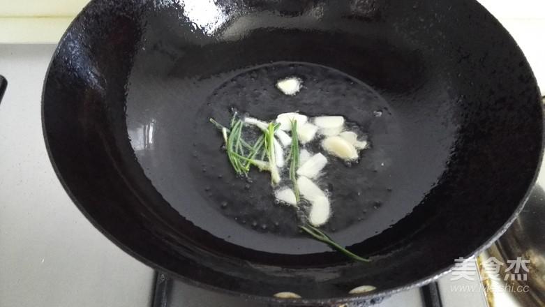 熱油鍋,放入蒜瓣,蔥段炒出香味