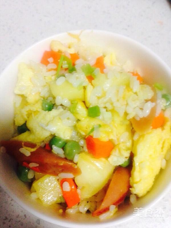 豌豆胡蘿卜火腿菠蘿炒飯的做法 - 家常豌豆胡蘿卜火腿菠蘿炒飯的做法非常簡單易學。如果豌豆胡蘿卜火腿菠蘿炒飯怎么做好吃,豌豆胡蘿卜火腿菠蘿炒飯的家常做法如何做一直困擾著你,易網健康菜譜提供的圖文豌豆胡蘿卜火腿菠蘿炒飯的家常做法大全,用最短的時間讓你學會豌豆胡蘿卜火腿菠蘿炒飯的做法