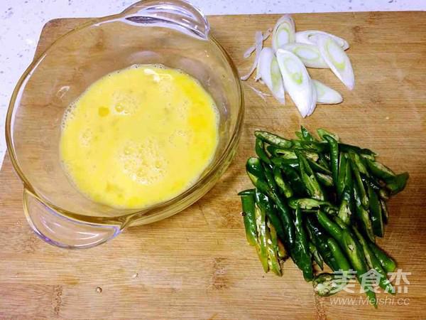 2.雞蛋打散、辣椒斜切成小段、蔥切粗絲;