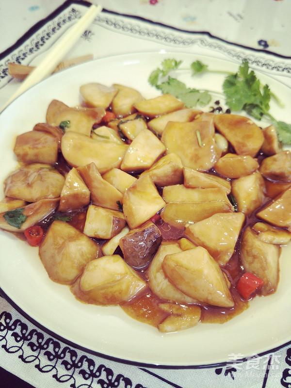 7.杏鮑菇燜煮得柔軟多汁,吸收了滿滿的醬汁,一吃就停不下嘴。