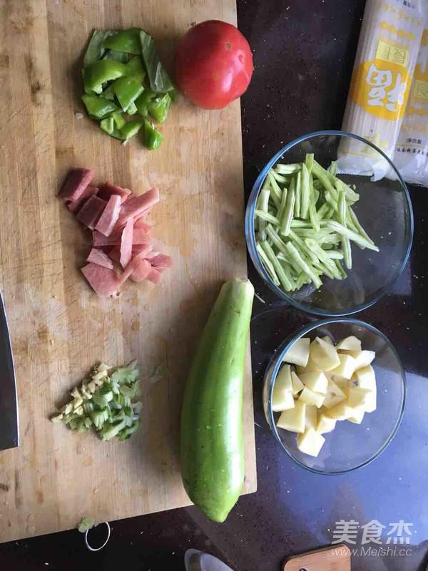 1.首先大蔥大蒜切好 精肉切片 豆角切成跟圖一樣(有利無入味) 土豆切塊 尖椒切片 茄子洗好了先不動 西紅柿也洗好了放著!一切準備就緒!