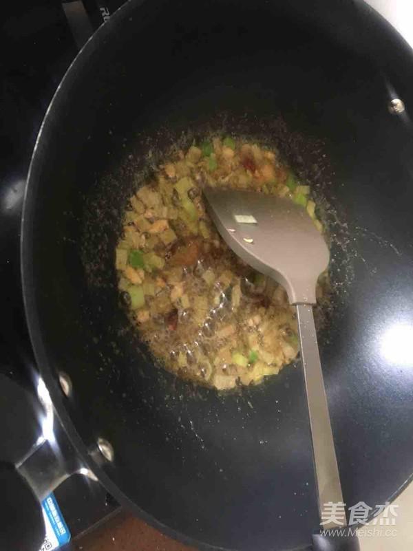 2.小火熱鍋 放入豬油適量(豆油代替也行不過豬油最佳)放入蔥蒜大料 三勺鹽十三香適量。