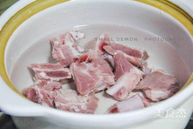 排骨洗凈,鍋中倒入清水,冷水放入排骨,煮開后把血水去掉。
