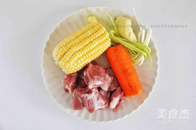 玉米切段,胡蘿卜切塊,姜切片備用。