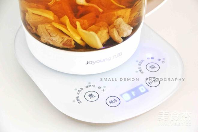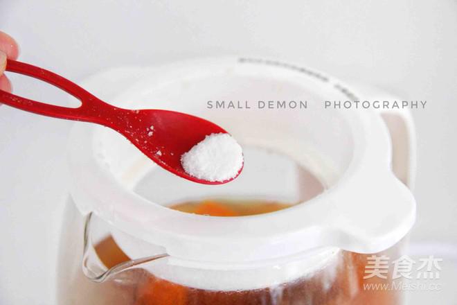 在工作還有半小時左右加入玉米和胡蘿卜,蓋上壺蓋,繼續工作。