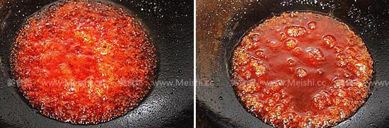 8.炒鍋燒熱放少許油,然后放入番茄醬炒出紅油