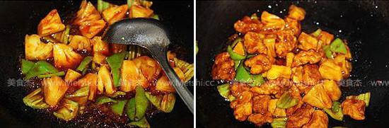 10.放入菠蘿和青椒炒勻