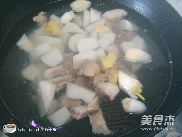 加入羊排和白蘿卜中小火煮一個(gè)半小時(shí)