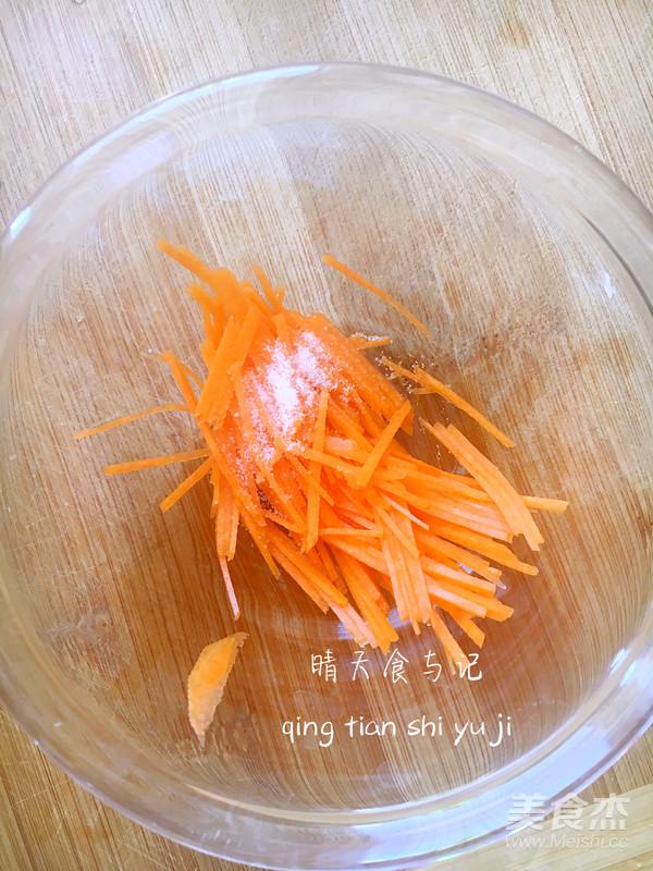 胡蘿卜切細絲放一點點鹽腌制一會兒;