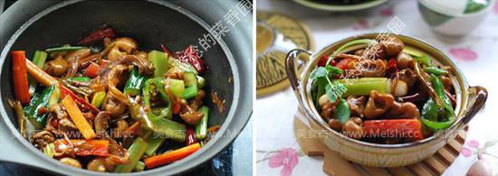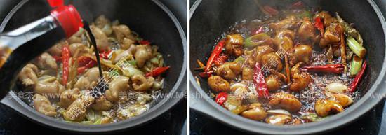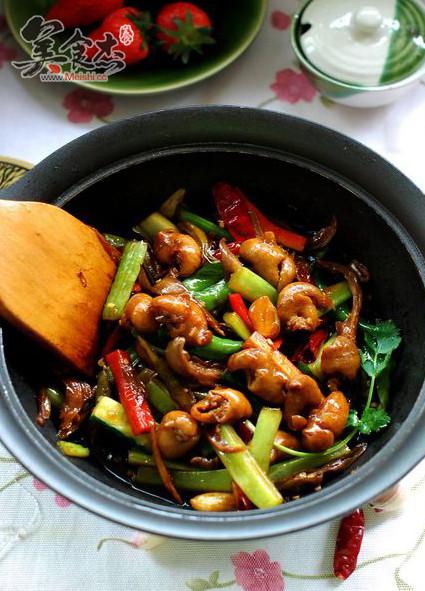 15.翻炒幾下,一點味精,關火,一盤色澤紅亮,滋味鮮香的干鍋肥腸就可以裝盤上桌了