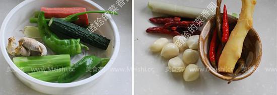 6.調料:蔥段、大蒜、生姜、花椒、干辣椒、泡姜、泡紅椒