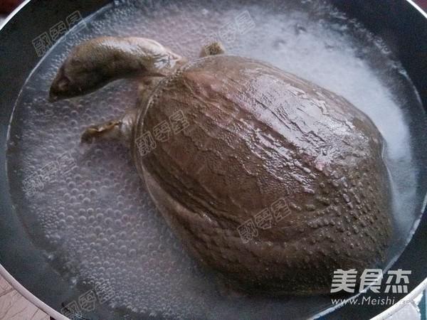 將甲魚放入冷水鍋中,加入姜片和料酒