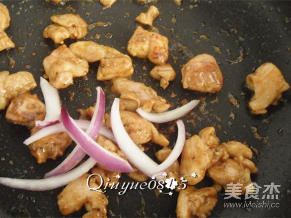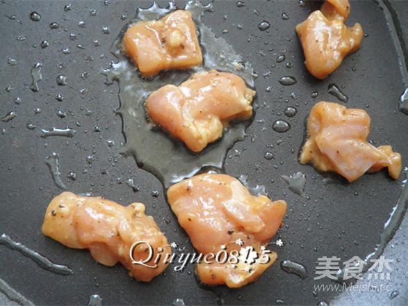 平底鍋燒熱,倒少許油,放雞肉煎制