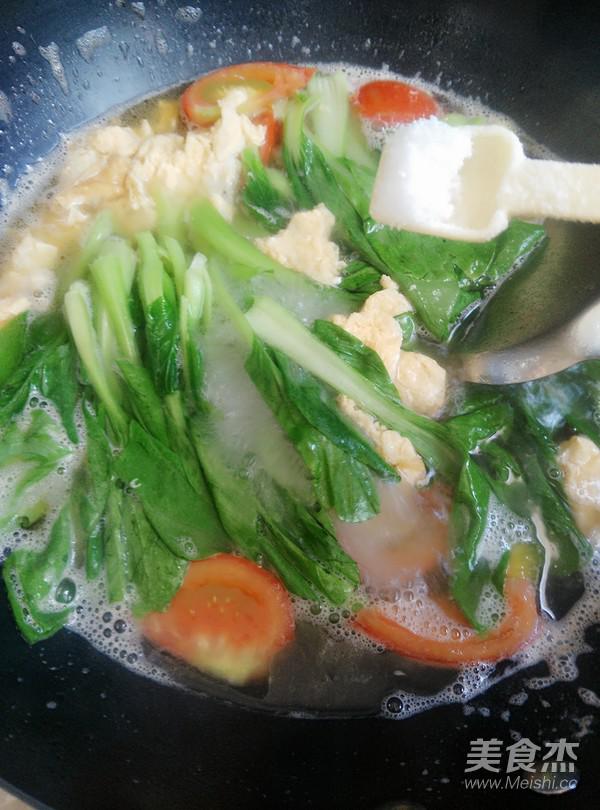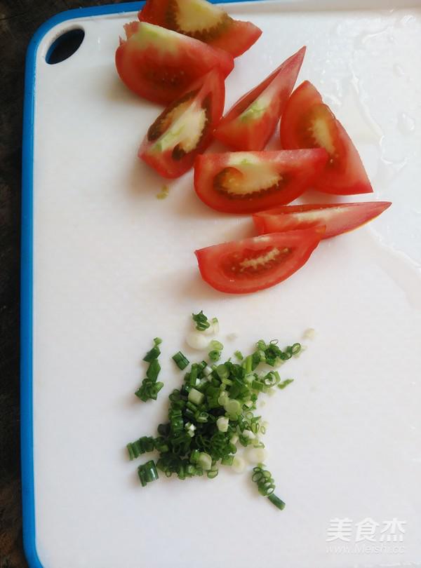 番茄洗凈去蒂切小塊,香蔥洗凈切蔥花