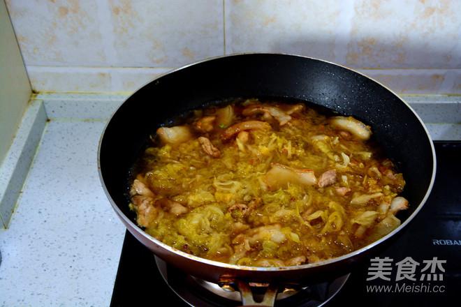 放進寬粉,煮至開鍋狀態,烹入鹽和雞精,燜20分鐘左右。