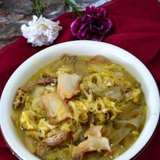 2.白肉是必備的,和酸菜一起燉,肥而不膩,大燉菜燉的時間越長,味道越鮮美。