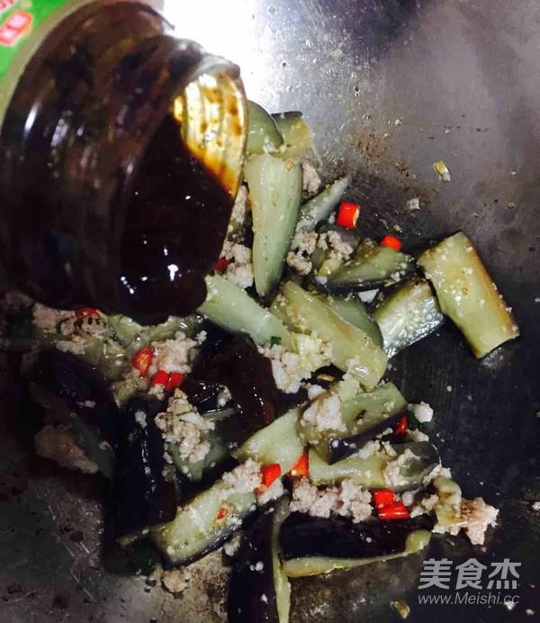 倒入茄子,翻炒后加入適量的黃豆醬,沒有可以不放,也可以換成豆瓣醬