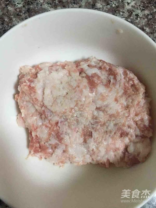豬肉剁成末,加入一點鹽(想再加點淀粉進去也可以),備用
