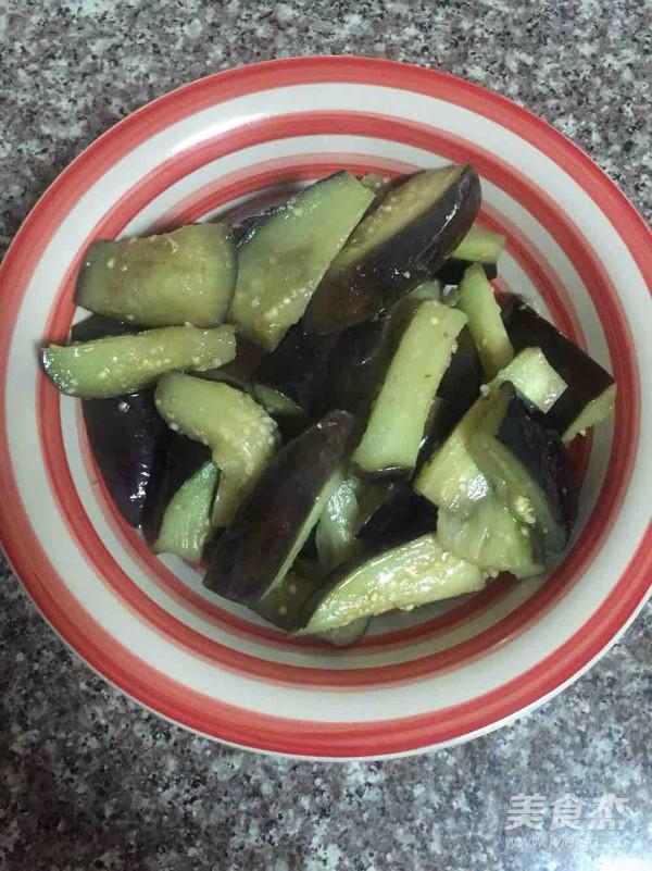 茄子洗凈后切條或切滾刀塊,泡入鹽水中