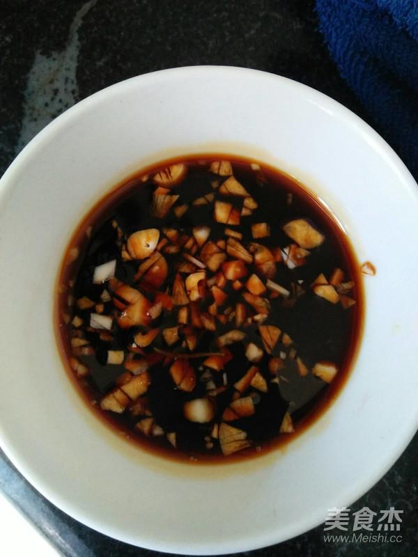 拿一個小碗,倒生抽,把大蒜放進去就可以當做蘸料來用。