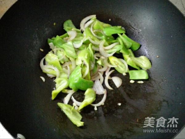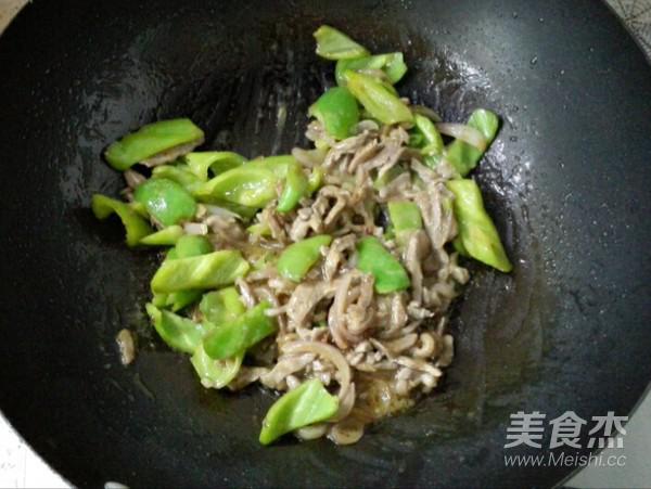 鍋中油燒至五成熱,下牛肉絲滑炒至全部變色撈出