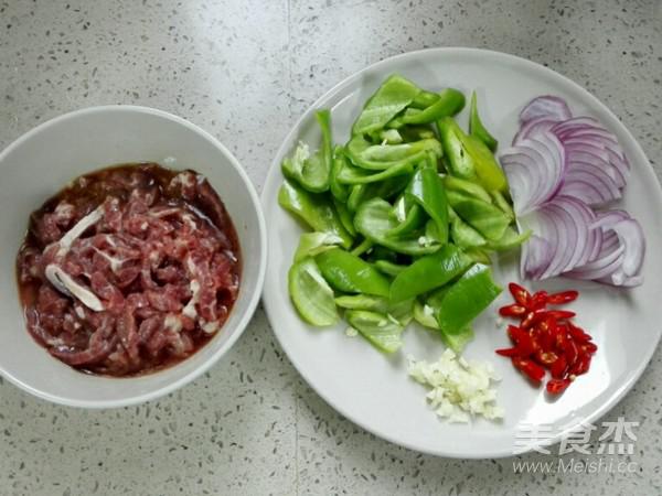 牛肉切絲,放少許鹽、料酒1勺、白胡椒粉、生抽2勺、小蘇打少許、淀粉1勺,抓勻,腌制10分鐘。大蒜切末、小米辣切段、洋蔥切碎
