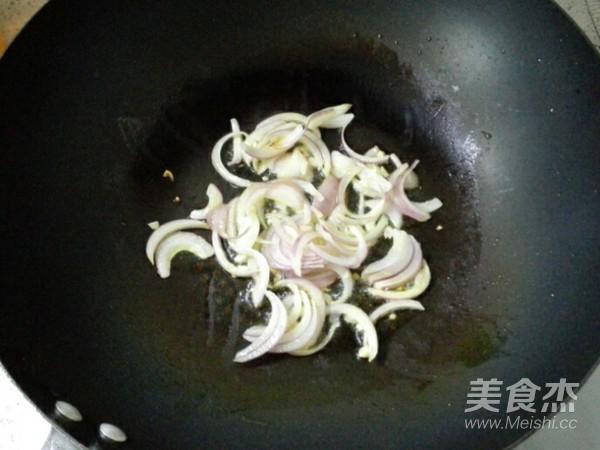 鍋中留少許底油,下蒜末、洋蔥爆香