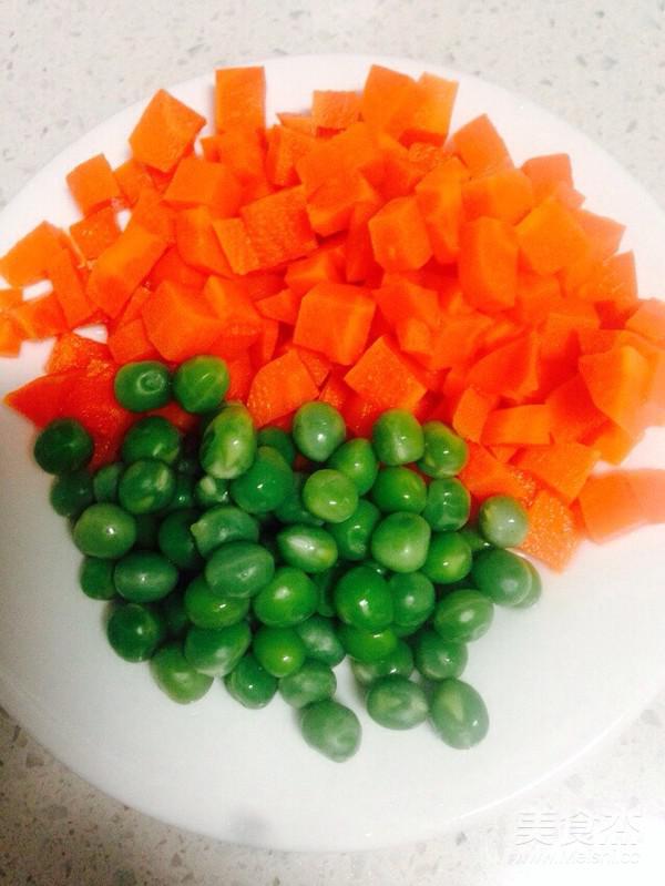 鍋里倒入適量的水 放入胡蘿卜和豌豆,焯水