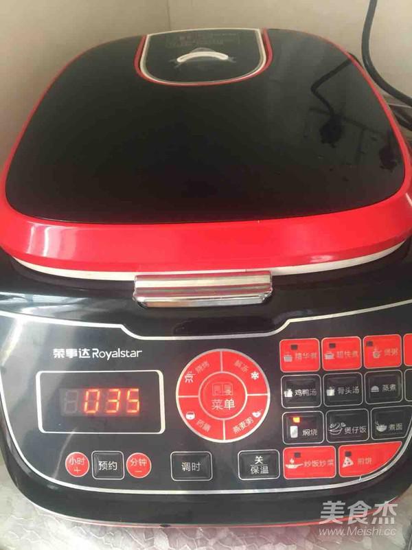 五花肉放入鍋內(nèi),加入姜絲八角桂皮,料酒,生抽,老抽,鹽,糖,翻拌均勻,蓋上鍋蓋,選燜燒功能。35分鐘后即可品嘗美食了。