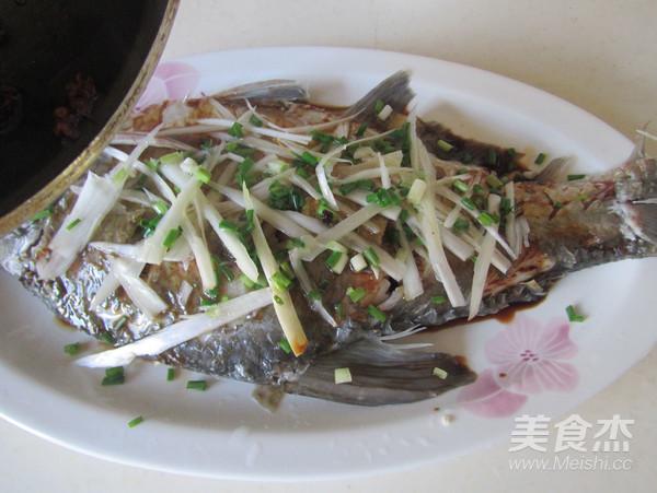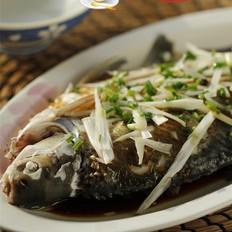 1. 武昌表面劃上幾刀后加入鹽和料酒涂抹,腌制一下; 2. 蒸魚時將姜片放在魚的表面上; 3. 這魚大約一斤重, 蒸上八分鐘; 4. 魚蒸好后去除姜片, 趁熱澆淋上蒸魚豉油; 5. 最后將燒熱的花椒油澆淋在鋪上大蔥和小蔥的魚身上。