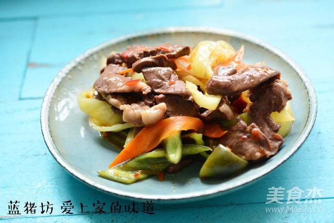 轉大火放入腌制好的豬心,翻炒到豬心變色