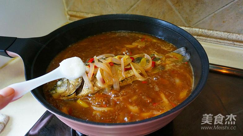 要時不時湯汁淋魚身,這樣色澤均勻,更入味兒