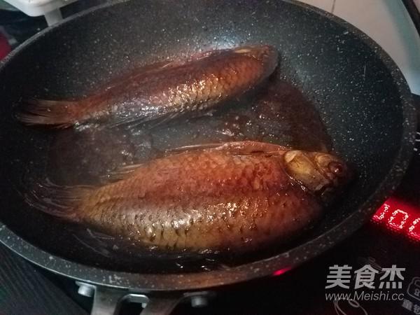 把鯽魚放進鍋內,中小火慢慢煎一下。