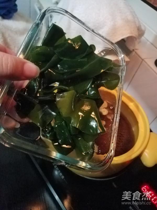 在把大蒜去皮,每瓣切兩瓣即可,倒入砂煲內。