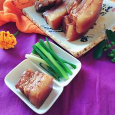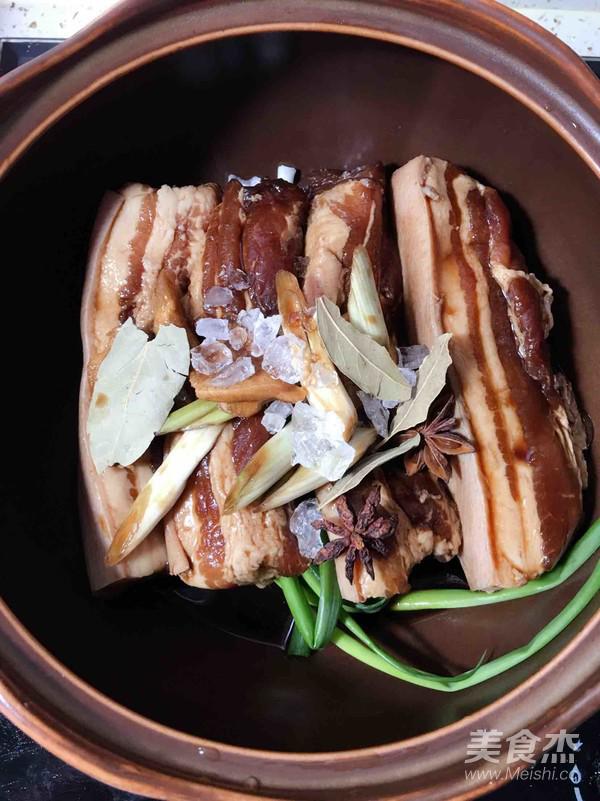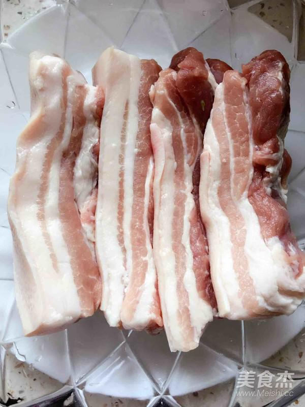 將帶皮五花肉洗凈切成5厘米左右厚的長條。