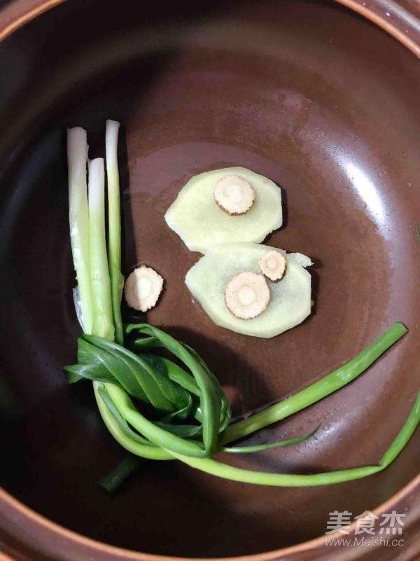準備砂鍋將香蔥、姜片和白芷放入鍋底。
