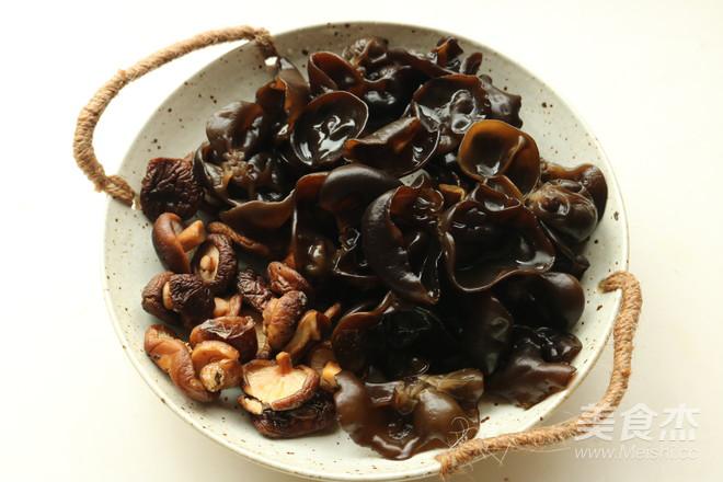準備配菜。木耳和干香菇提前泡發洗凈。