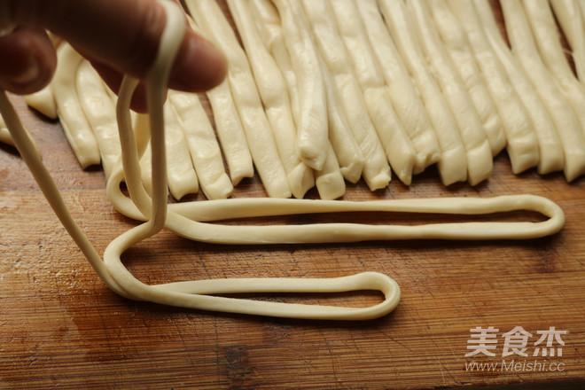 湯鍋水燒開后轉小火,做好的拉條放入湯鍋,全部放入后轉大火再煮1分鐘左右就可以了,不用擔心先下入的會煮爛。