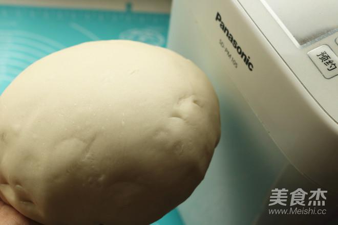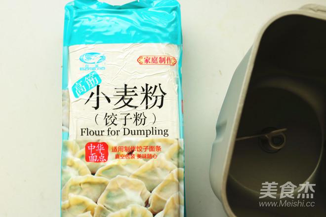 面粉放入面包機內筒,加入水和鹽。面包機選擇意大利面面團程序,揉面15分鐘。