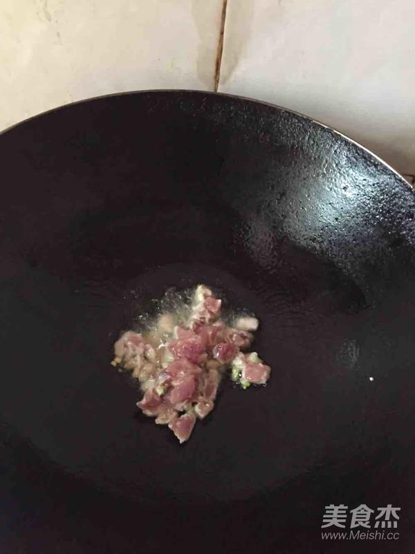 3.肉切丁,加食用油、鹽、胡椒粉、料酒、姜蔥末和生粉拌勻腌制片刻